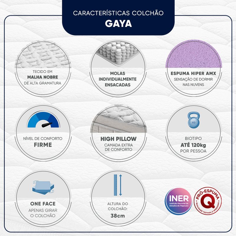 Certificações: Produto Certificado conforme Portaria do Inmetro nº75/2021 e INER (Instituto Nacional de Estudos do Repouso).